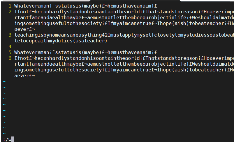 当编辑完成,就可以按 Esc 退出插入模式,进入到命令模式。可以使用 Shift+zz 命令保存退出,其他保存和退出命令见下文。
